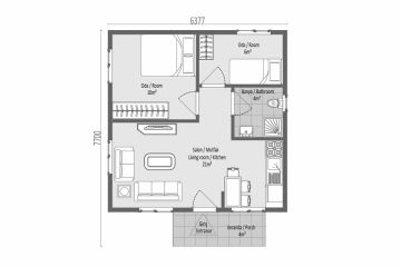 Salondan arkaya doğru ilerlediğinizde kapıların açıldığı mini bir antre alanı yer alıyor. Bu alandan geçildiğinde arka sol bölümde ebeveyn yatak odasına planda yer verildi. Oda penceresi evin sol bölümündeki bahçeye bakıyor. Bu bölümde arka sağ kısımda bir oda daha bulunuyor. Bu odayı genç odası veya çocuk odası alternatifiyle değerlendirebilirsiniz. İç plan orta sağ bölümde yer alan tuvalet ve duş ünitesiyle nihayet buluyor.