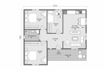 Solda yer alan ön cumbalı oda ve arka oda arasındaki tuvalet banyo ile iç plan tamamlanıyor.