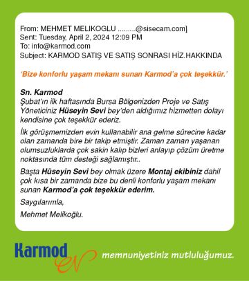 - Satış Sonrası Servis hizmetleriyle Karmod evlerinin arkasında durur.
